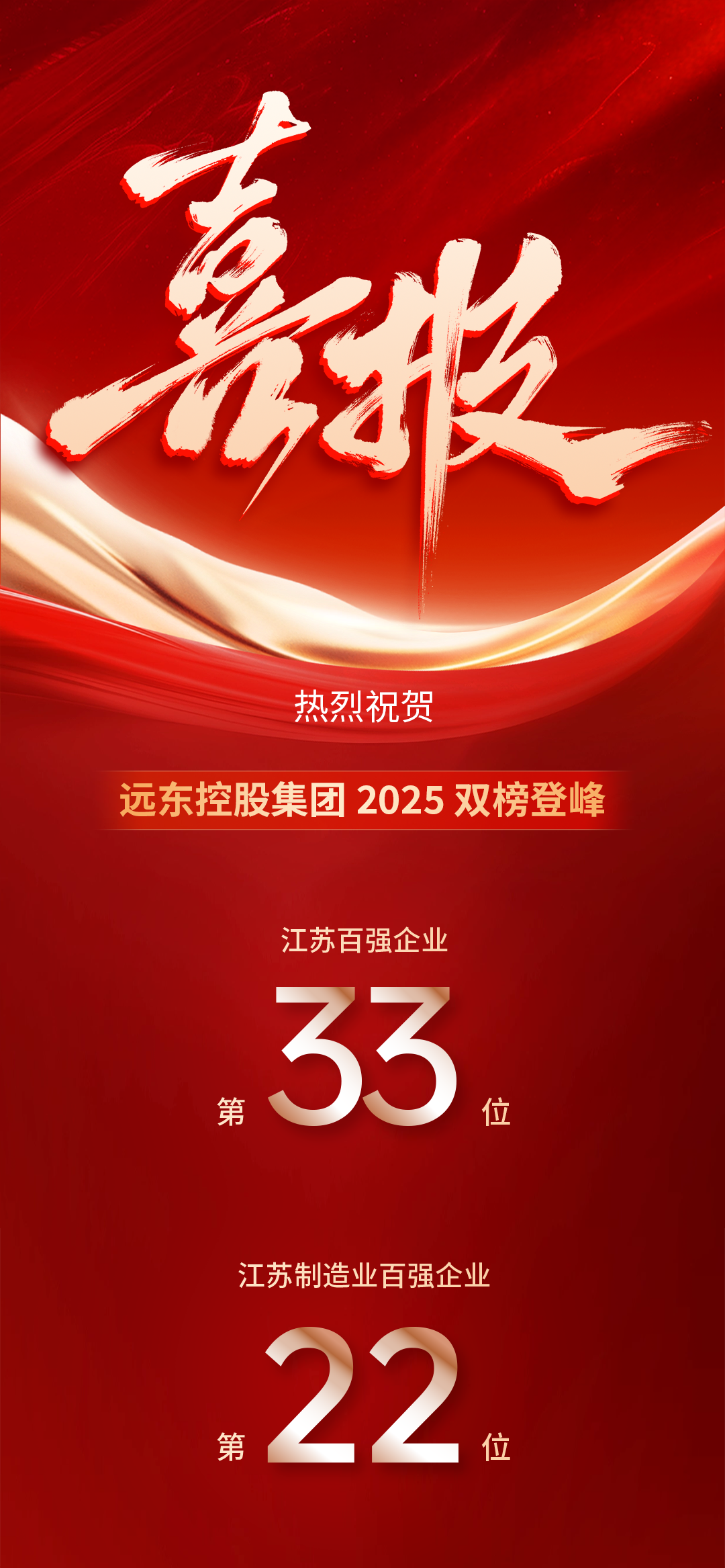 远东双榜登峰 | 江苏百强企业第 33 位、江苏制造业百强企业第 22 名